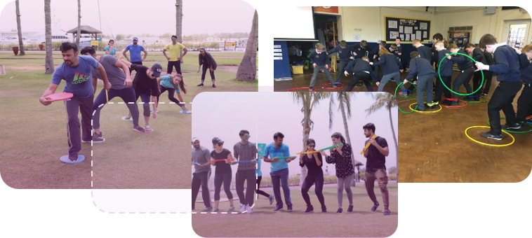 A set of group challenges characterized by movement and interaction developed in a unified track that enables participants to practice the most important teamwork skills such as: